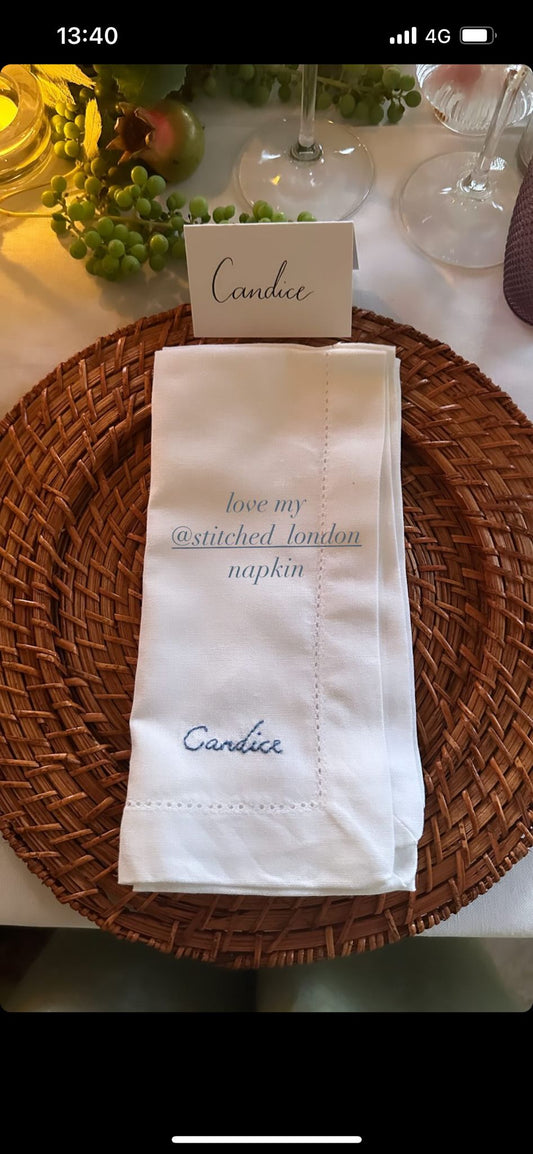 Hand Embroidered Personalised Name Napkins