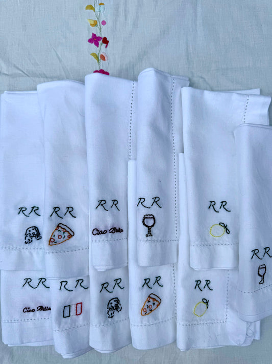Hand Embroidered Personalised Icon Napkins