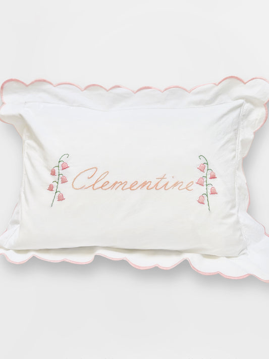 FLORAL LETTERS Hand Embroidered Baby Scalloped Pillowcase
