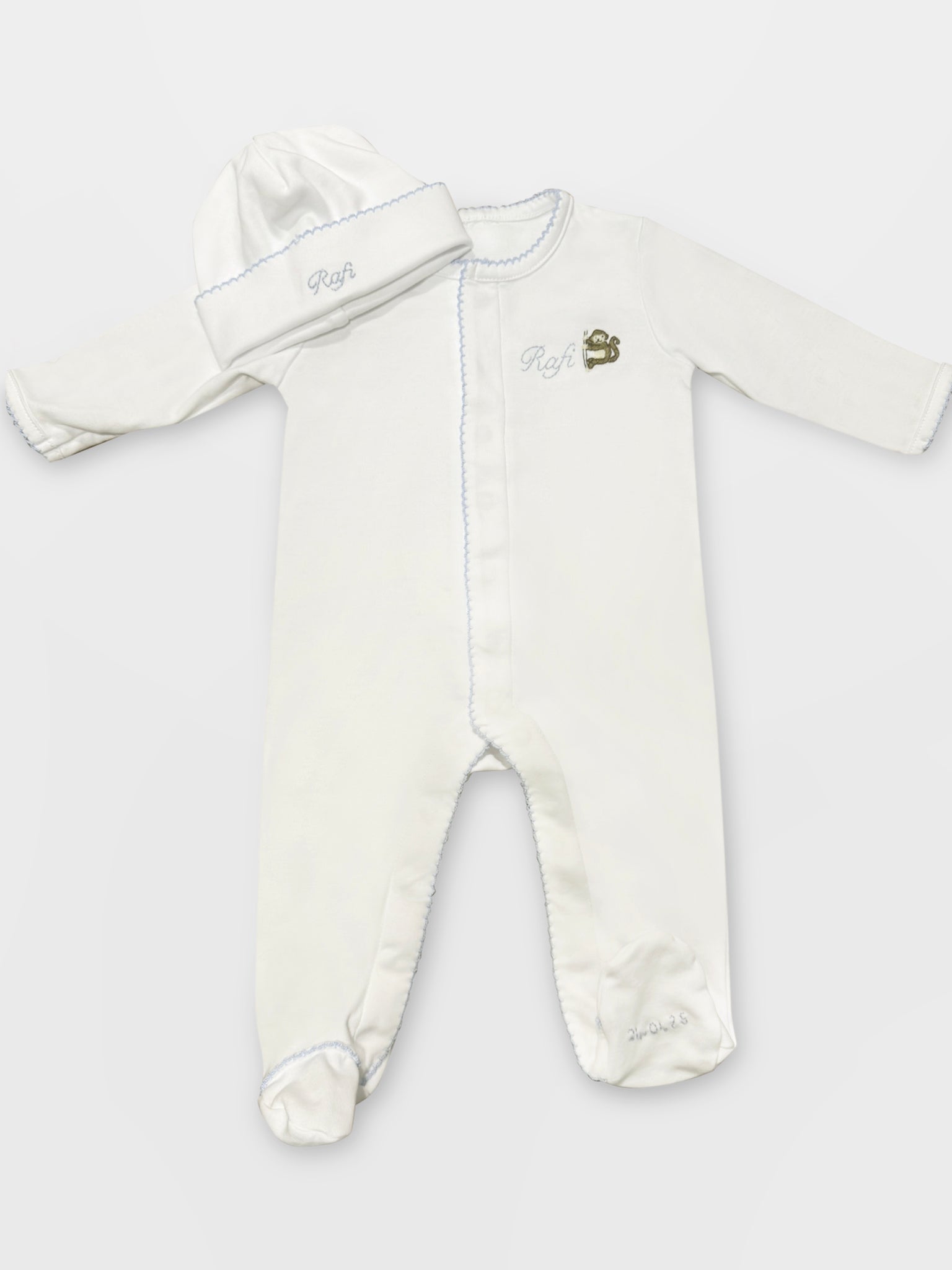 *Please note cost includes babygrow (sleepsuit), hat and embroidery on the hat and babygrow.